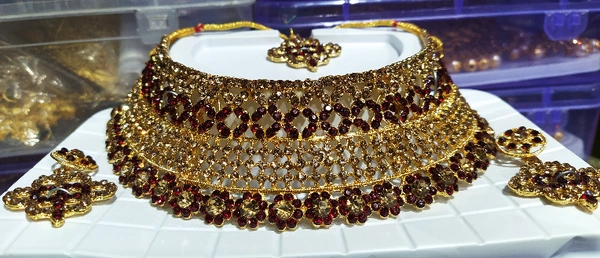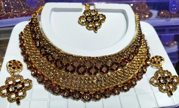 New design premium quality pure copper brass kundan stone ruby kemp stone designer high quality heavy finish designer neckset with earring. Set of 1pc set with earring. Jewellery itself has no value, but the jewels which can make women shining are priceless! This piece of jewelry comes with the assurance of quality and durability.
