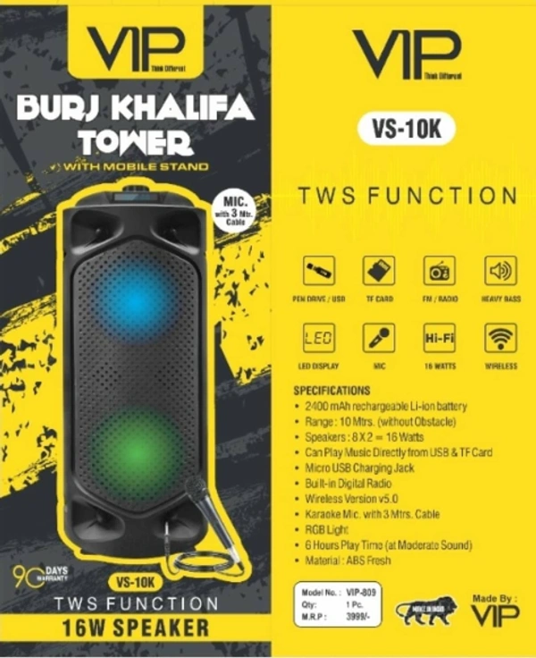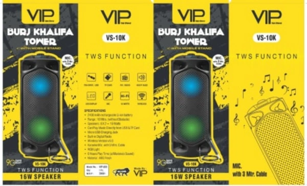 VIP VS-10K 16 W Black 1.0 Channel Wireless Tower Speaker